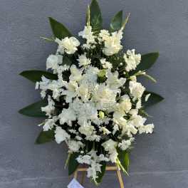 Price: $229.99 White Standing Spray - roses, orchids, casablanca lilies and hyndrangea Product Tags: Next-day Delivery